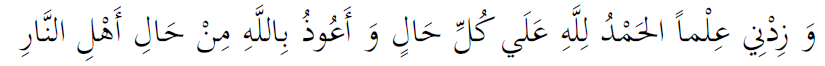 Wa zid-nee ‘ilman al hamdulillah ‘ala kulli haal wa a’oothu billahi min haal ahlin naar